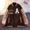 Herren Retro Herbst Baseballjacke mit Kaffeefarbe, Buchstaben- und Frotteestickerei, Spleißdesign für Paare.