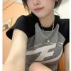 Retro Contrasting Rag-shoulder Short-sleeved T-shirt for Women's Summer New Printed Casual Slim Fit Short Top
