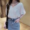 Damen Sommer Übergröße Kurzarm Tops V-Ausschnitt Cardigan Tops Einfarbig Büro Unterhemd