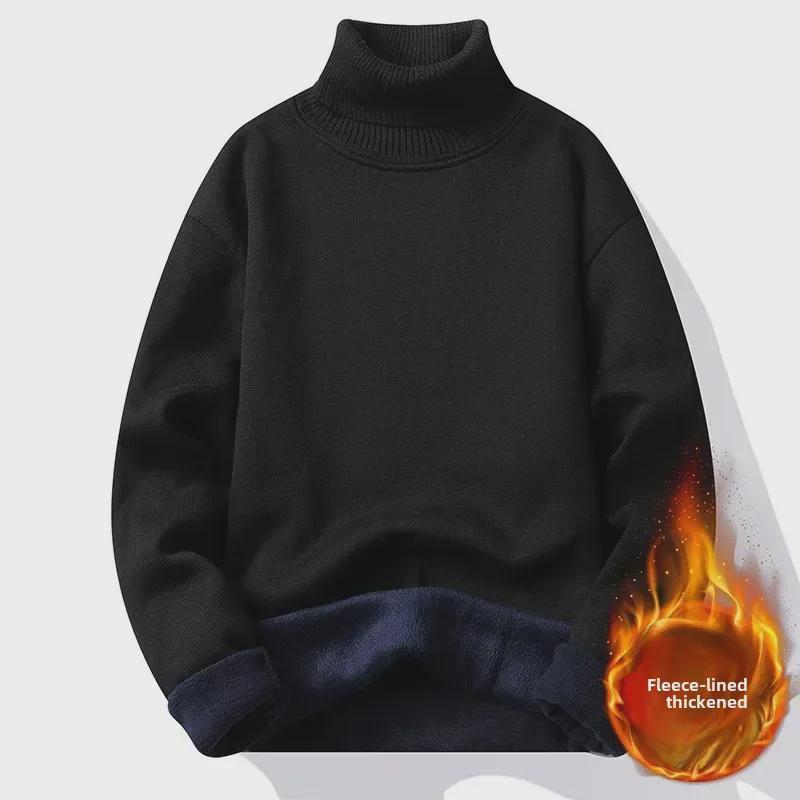 Unisex grenzüberschreitender Herbst/Winter Rollkragen-Fleece-Pullover - Einfarbige Strick-Basisschicht