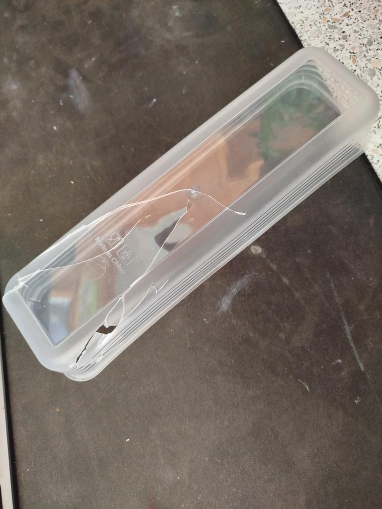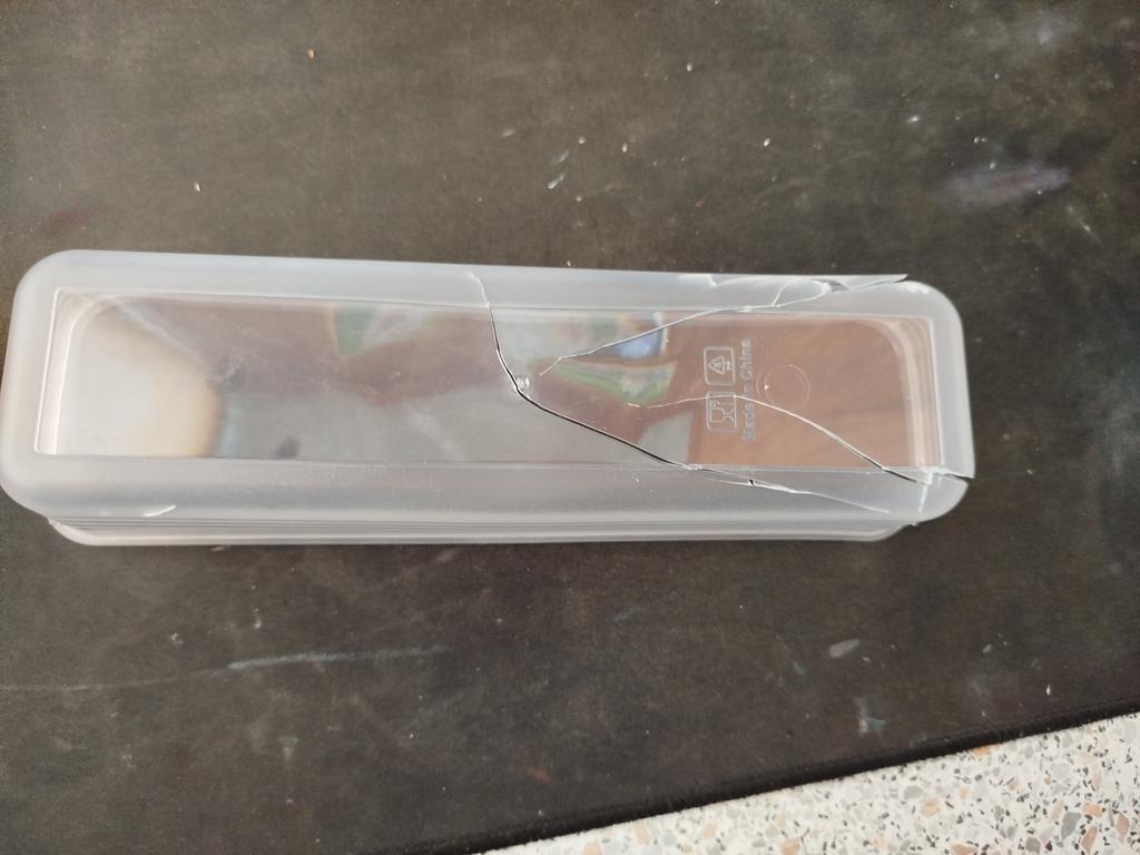 Ein Behälter kam komplett zerbrochen an, die Deckel lassen sich kaum auf die Schachtel stecken, das Material ist sehr dünn, man erwartet, dass er gleich auseinanderfällt.
