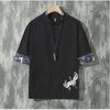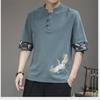 Herren-T-Shirt aus Leinen mit Kranich-Stickerei für den Sommer – lockere Passform, kurzärmlig, trendiger chinesischer Stil