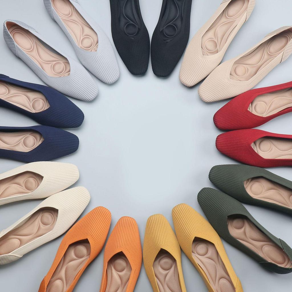 Erleben Sie Eleganz und Komfort mit diesen flachen Damenschuhen mit einzigartigem, atmungsaktivem Strickdesign. Diese Schuhe sind aus weichem Mesh-Obermaterial gefertigt und bieten eine bequeme und luftige Passform für den ganzen Tag.. Das quadratische Zehendesign verleiht einen trendigen Touch, während das gewebte Eierrollenmuster Ihrem Outfit einen unverwechselbaren Stil verleiht. Diese Schuhe sind mit einer strapazierfähigen Gummisohle ausgestattet und bieten hervorragenden Halt und Halt. Die Textil-Innensohle erhöht den Gesamtkomfort und macht sie perfekt für legere und halbformelle Anlässe. Ideal für alle, die stilvolles und dennoch bequemes Schuhwerk suchen.