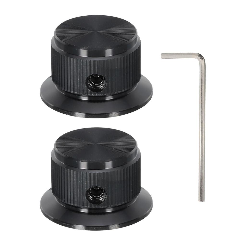Höhe des Lautstärkereglers: 14,5 mm; Außendurchmesser: 24mm; Innendurchmesser: 6 mm; Farbe: Schwarz; Material: Aluminiumlegierung; Packungsinhalt: 2 x Gitarren-Bedienknöpfe (mit Schraubenschlüssel);