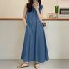 ZANZEA Damen Sommer Rundhals Lose Casual Ärmelloses Kleid