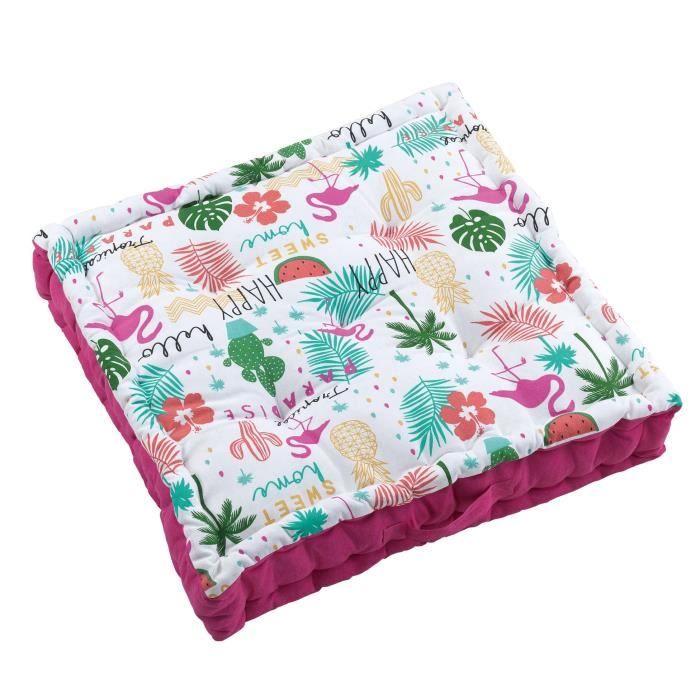 Coussin de sol matelassé - Flamant Rose - 60cm - 100% Coton - Confort optimal - Intérieur
