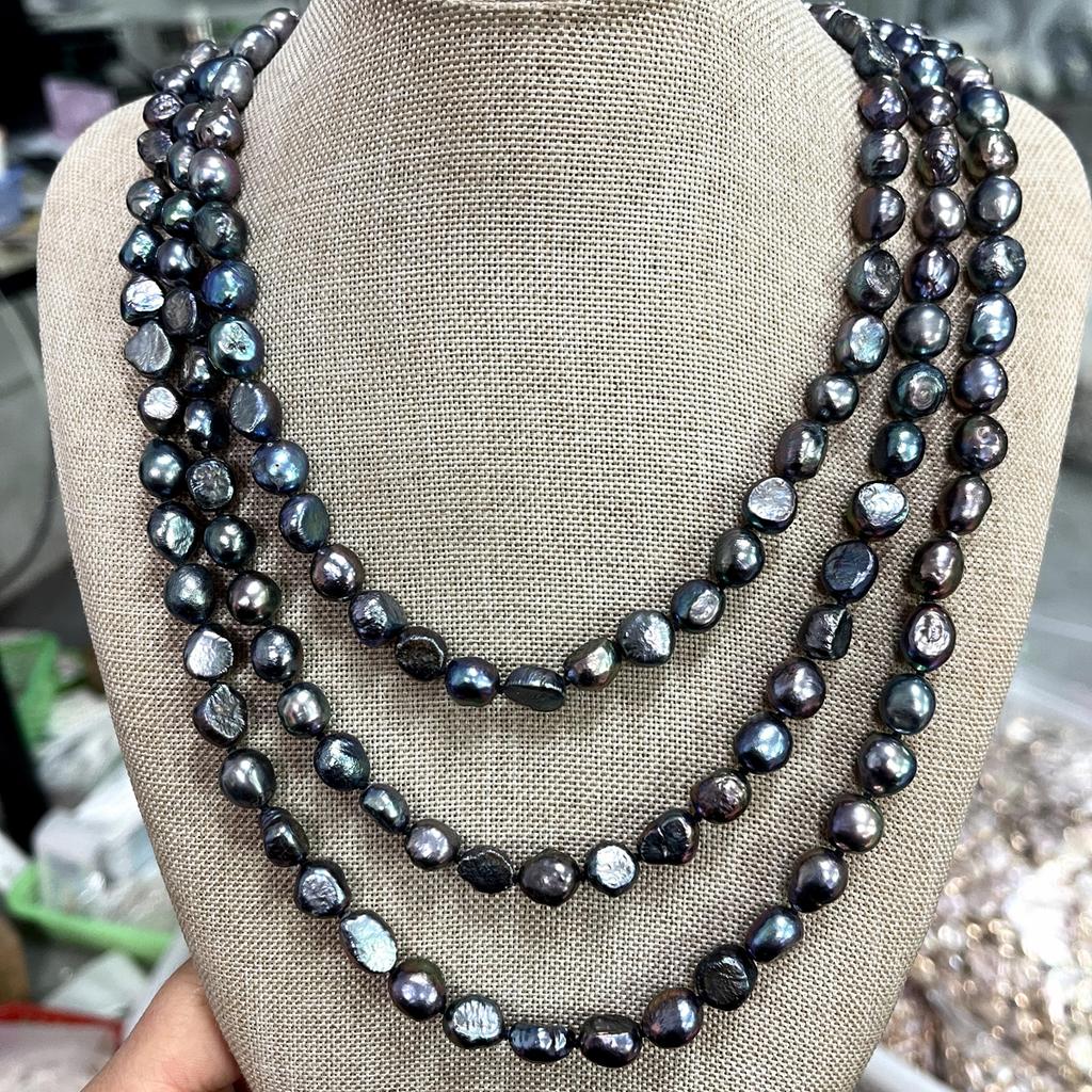 Perlenkette zum Muttertag, unregelmäßige schwarze Perle, 9–10 mm, tolles Geschenk für Mutter und Tochter