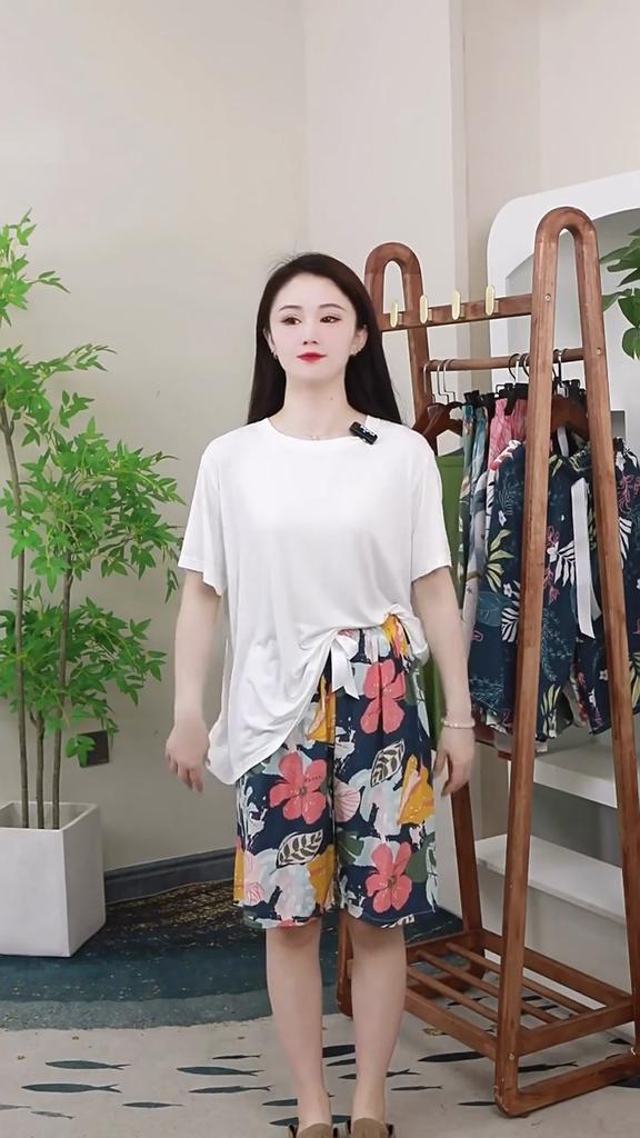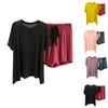 Summer Solid color Tshirts and Print shorts Simple Homewear O-Neck Loose Tshirts and Poplin short pants Casual sleepwear suits