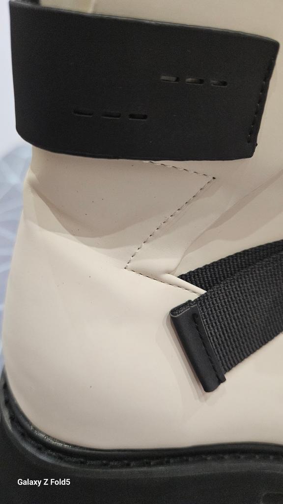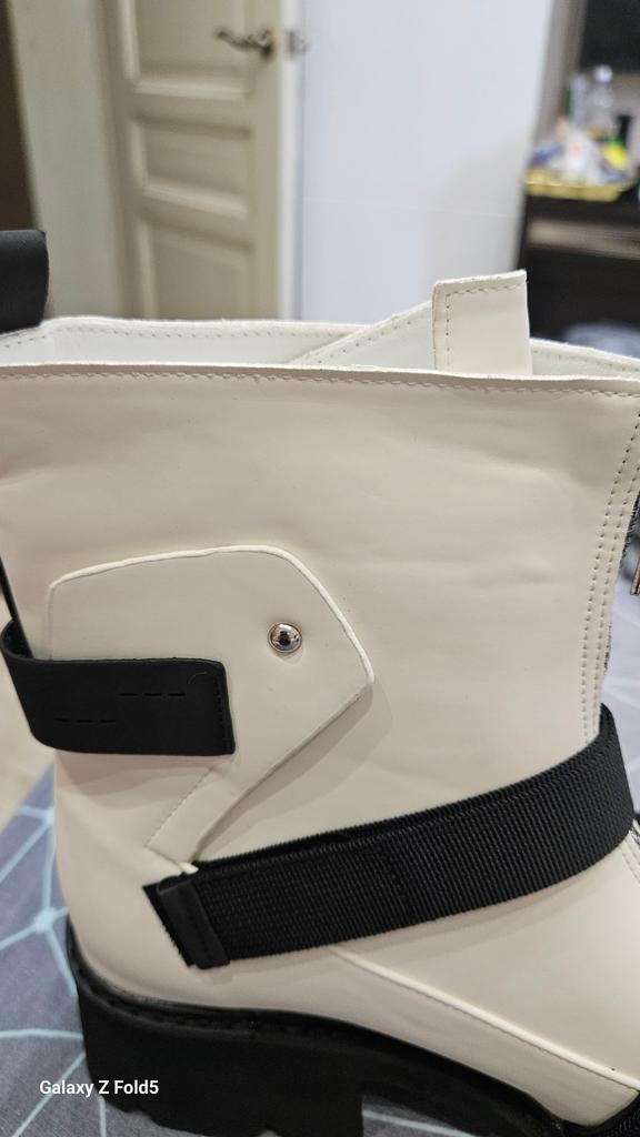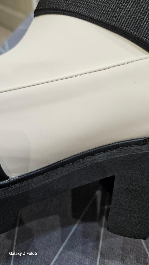 Die Stiefel sind alle verbeult, auf dem Weißen sind Schmutzstreifen, unbequem, die Verarbeitung ist handwerklich, Kleber ist sichtbar, ich bitte um Entschädigung und die Ware vor dem Versand zu überprüfen