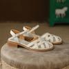 Sommersandalen für Damen im Retro-Stil, modisch, elegant, mit Webmuster, Zehenkappe, bequeme Schuhe für Damen, niedriger Absatz, Strandurlaub, Sandalen