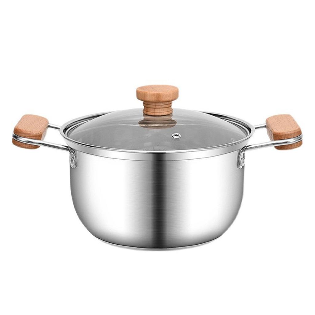 Edelstahl Suppentopf Doppelte Griffe Leicht zu Reinigen Ramen Suppe Haferbrei Kochtopf für Induktion