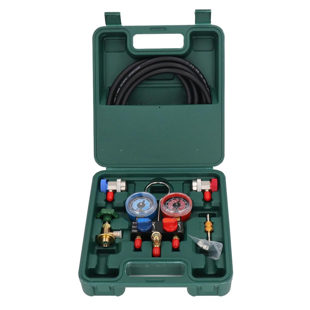 1 x 3-Wege-Messgerät(G14 männlich)3 x Schlauch (G14 weiblich)2 x verstellbarer Anschluss (G14 männlich) 1 x Perforator (G14 männlich)1 x Adapter (G14 Stecker auf G12 Buchse)1 x Aufbewahrungsbox