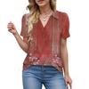 Damen Bluse Sommer Business Casual Arbeitstops Kurzarm Button-Down-Kragen V-Ausschnitt Bluse T-Shirt