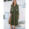 Damen Laternenärmel mit hohem Schlitz Kleid V-Ausschnitt A-Linien-Kleid
