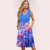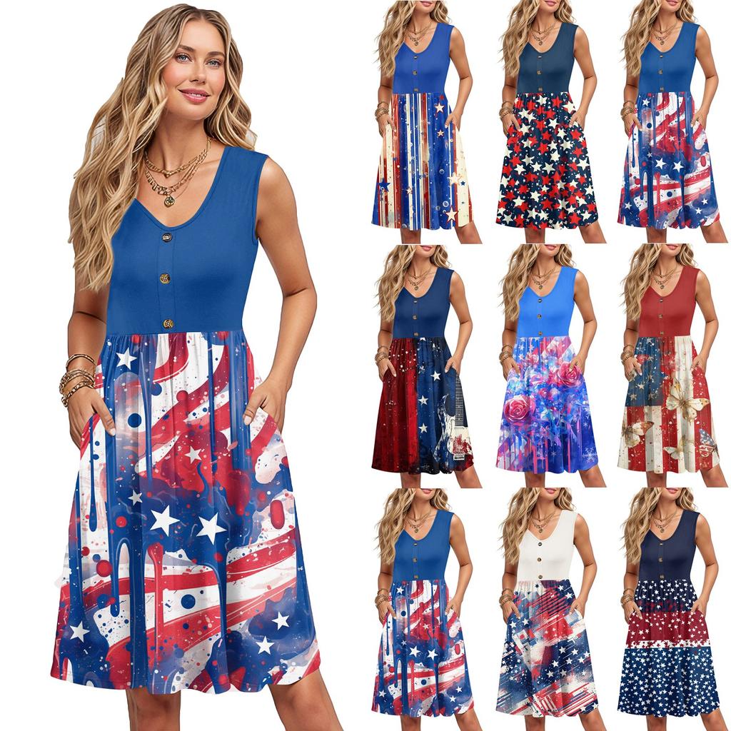 Damen Sommerkleider Ärmellos Lässig Locker Schwingend Knopfleiste Midi Sonnenkleid mit Taschen