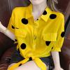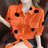 Kleines frisches Polka-Dot-Hemd Damen Sommer Koreanische Version Locker Kurzärmlig Schnürung Chiffonhemd Damen