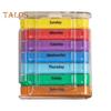 Mit den auf jedem Fach aufgedruckten englischen Buchstaben können Sie Ihren wöchentlichen Pillenplan ganz einfach planen, Zeit sparen und rechtzeitige Erinnerungen sicherstellen. Das unabhängige Öffnungsdesign jedes Fachs sorgt für eine hervorragende Abdichtung und schützt Ihre Pillen vor Wasser, Feuchtigkeit und Staub.