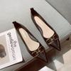 2025 new thick heel medium heel single shoes women's versatile autumn models with skirts, shallow mouth pointed head low heel evening shoes
