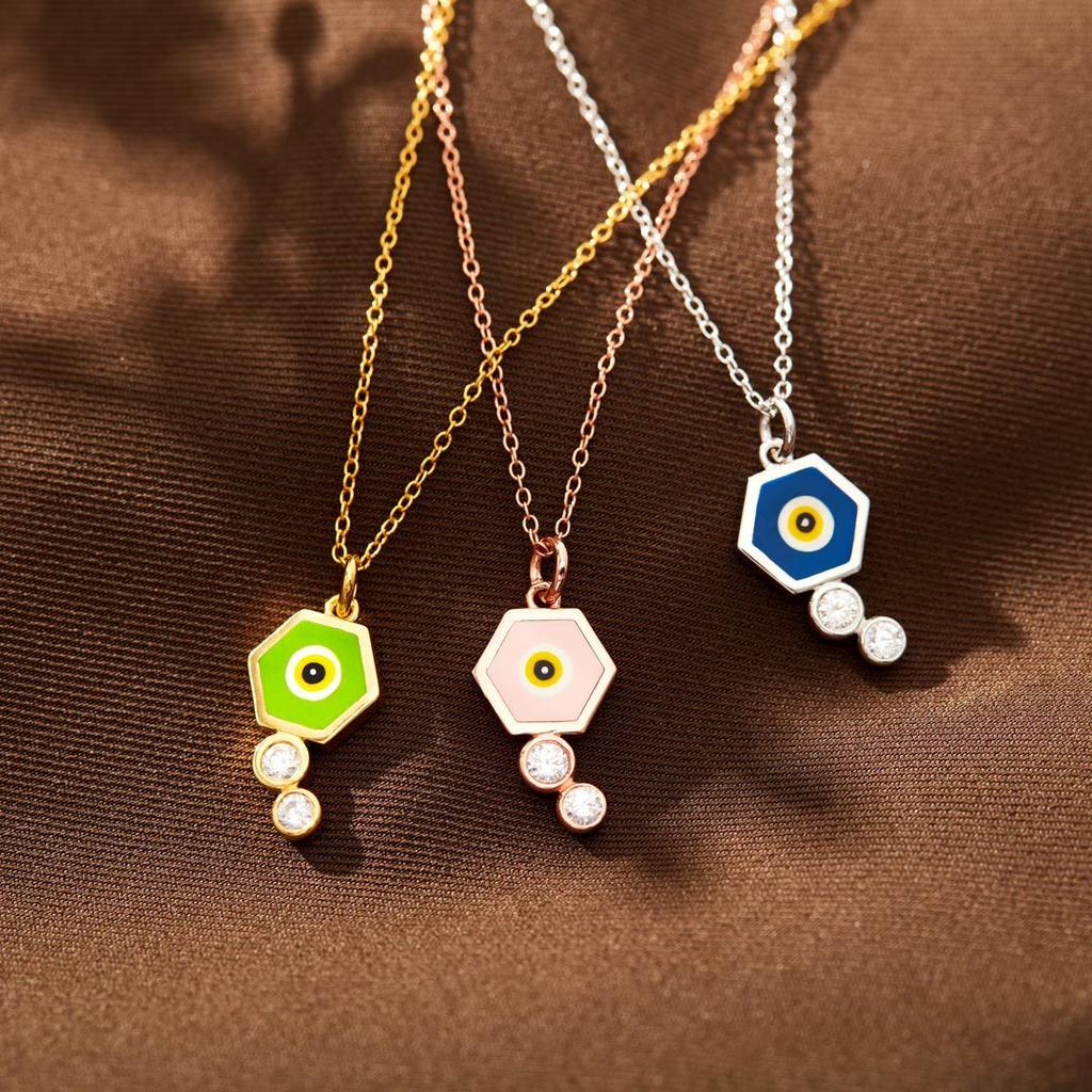 Sechseckige Emaille Böser Blick Halskette für Damen Persönlichkeit Schlichter und Modischer Stil Schlüsselbeinkette