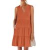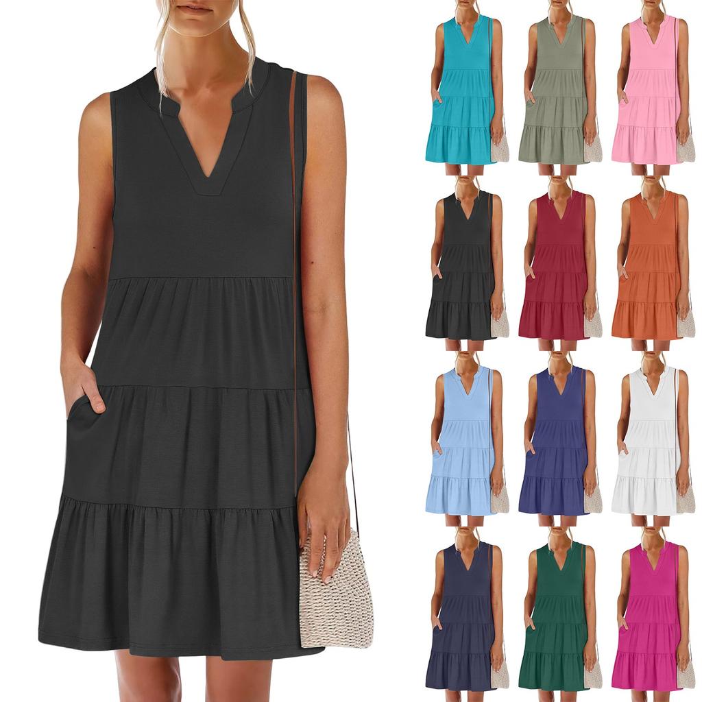 Women's Summer Fashion V-neck Sleeveless Patchwork Solid Color Casual Dresses