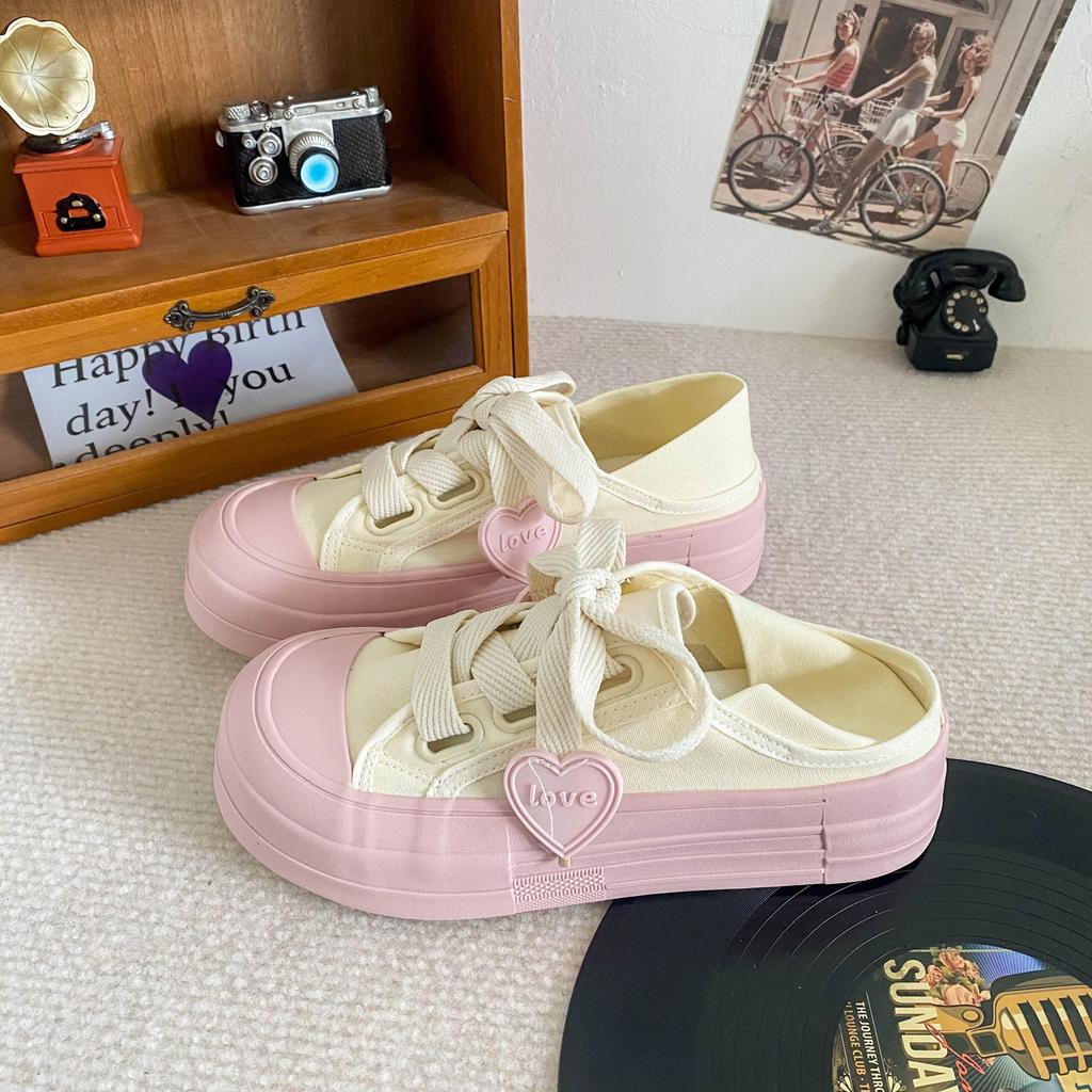 BE-6715 latex insole/love niche two wear canvas shoes women's summer thin lazy versatile half-drag board shoes