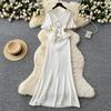 Retro Strickpullover Rüschen Sexy Einreihig Elegant A-Linie Langes Maxi Abend Party Kleid Damenmode Sommerkleidung