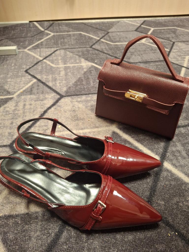 Sommer Französisch Weinrot Spitz Lackleder Mittelabsatz Overhead Sandalen für Frauen Retro Skinny Heel Back Leere Schuhe