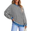IHUASU Damen Sportlich Lässig O-Ausschnitt Langarm Farbgestreiftes Hoodie Set Tunika T-Shirt
