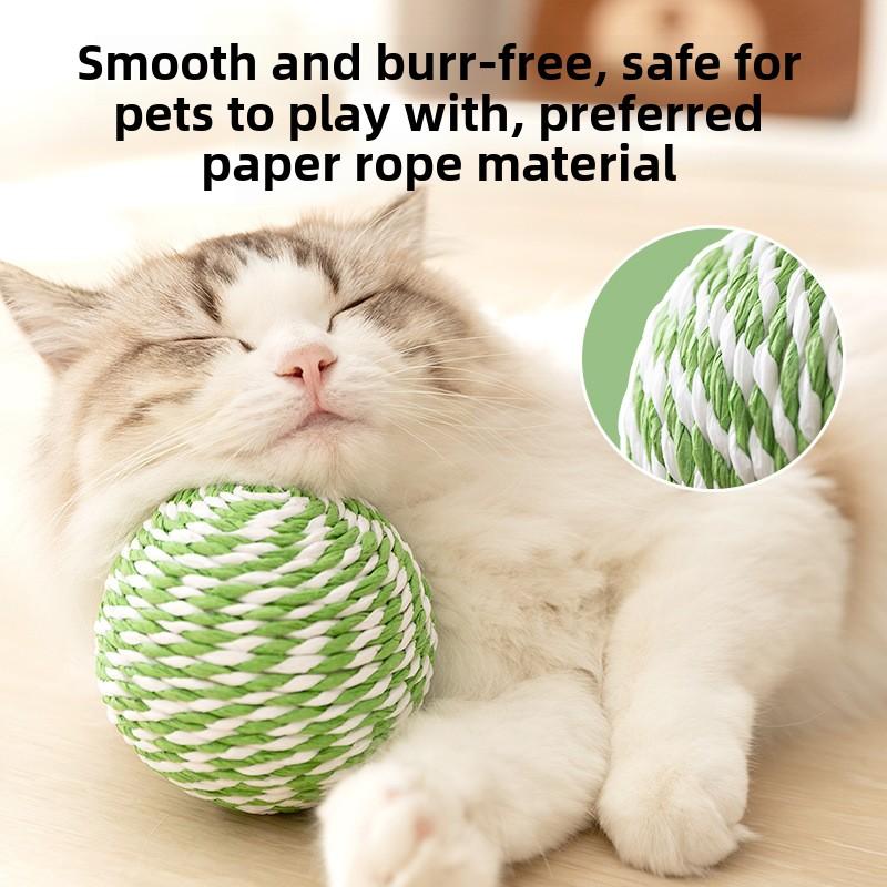 Cat Colorful Sisal Ball Toy Wool Ball Teasing Cat Ball Plush Self-hi To Relieve Boredom and Resist Biting Teeth Grinding Stick Teasing Cat Supplies