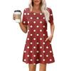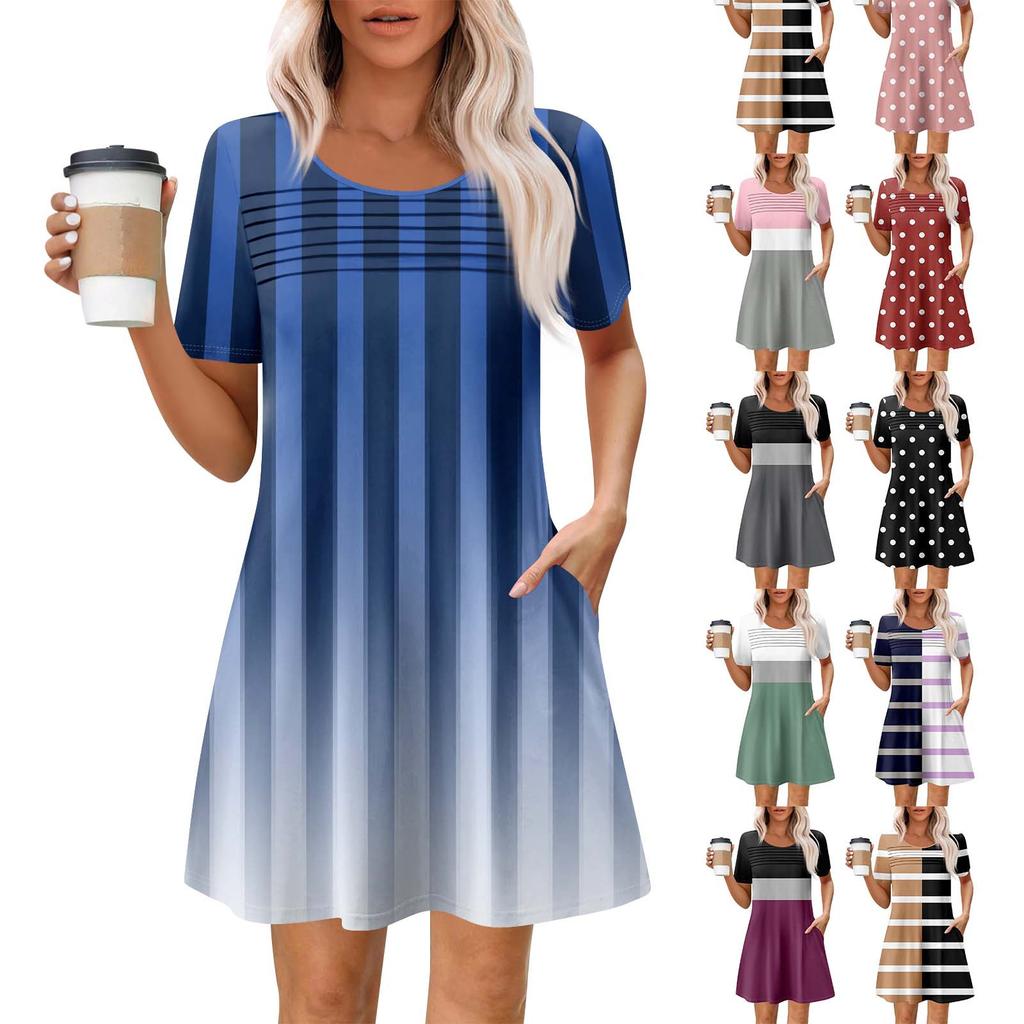 Damen Sommer Casual Rundhals Plissee Mit Taschen Bedruckte Kurzarmkleider