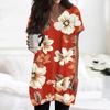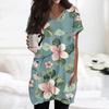 Damen Retro Blumen- und Blätterdruck V-Ausschnitt Midi Tasche Kurzarm Top