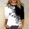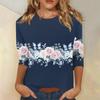 Modisches, lässiges Pullover-Oberteil mit Dreiviertelärmeln und bedrucktem Kragen für Damen