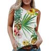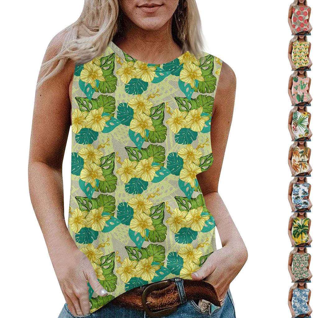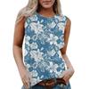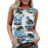 Damen Rundhals Lässig Ärmellos X Hawaiianisch Bedrucktes Westen-T-Shirt Top