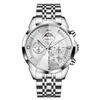 Herrenuhren Mondphase Chronograph Quarzuhr Edelstahl Leuchtend Datum Marke Römische Ziffern Armbanduhr
