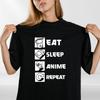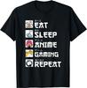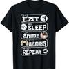 Herren Grafik-T-Shirt "Eat, Sleep, Anime, Repeat" - Kurzarm, Rundhalsausschnitt in Schwarz mit bunten Icons - Lässige Sommerbekleidung