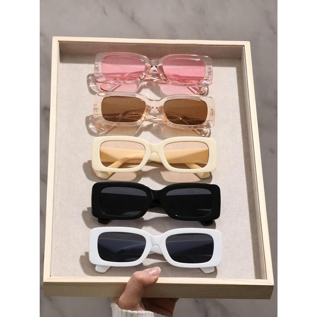 2/5 Stück S modische Sonnenbrillen aus Kunststoff mit rechteckigem Rahmen für Damen und Herren, für den Alltag, Brillen, Urlaubs-Outfits, Strandparty-Accessoires.