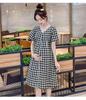 2023 Neues koreanisches Umstandskleid mit V-Ausschnitt und Karomuster – mittellang, kurzärmelig, lockere Passform