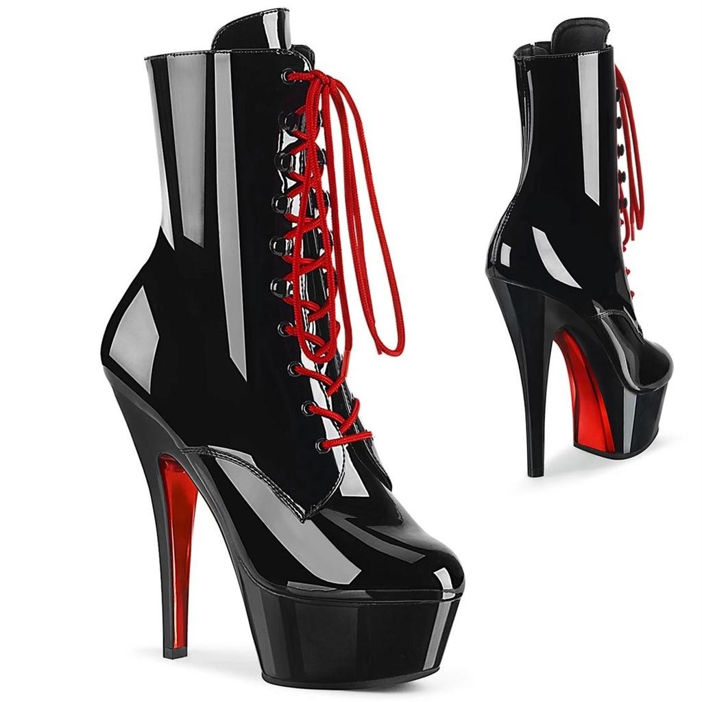 15Cm Hating Sky High Heel Skinny Heel Thick Bottom Waterproof Platform Red Lace-Up Boots