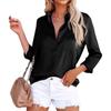 Ladies Spring Summer Long Sleeve Solid Color Soft Pocket All Match Blouse Shirt Top