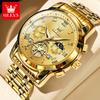 OLEVS Top Original Quarz Herrenuhren Klassisches Römisches Zifferblatt Mondphase Wasserdicht Leuchtend Luxus Armbanduhr für Herren