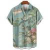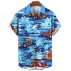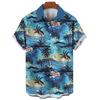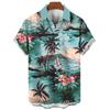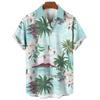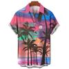 Hawaiian shirt, men's and women's 3D palm tree print, fashionable casual short sleeved shirt, lapel button top, oversized unisex clothing