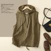 Literarische Retro Kapuzen Leinen Strickjacke Weste Damen Lässig Locker Frühling und Herbst Nähte Ärmellose Weste Kurze Jacke