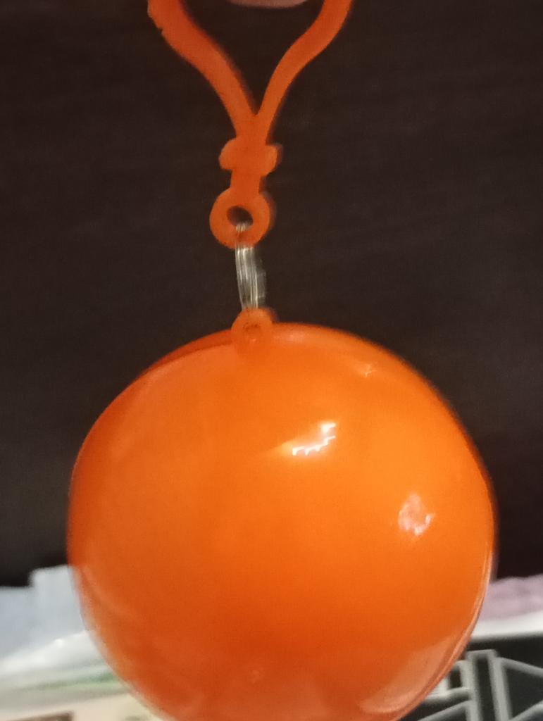 Kompakter Regenmantel in einer leuchtenden Kugel. Kugelgröße wie ein Tennisball