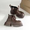 Retro braune Stiefel mit dickem Absatz und dicker Sohle für Damen, 2025 neu, Frühling und Herbst, höhenvergrößernd und schlankmachend, britischer Stil, kurze Stiefel