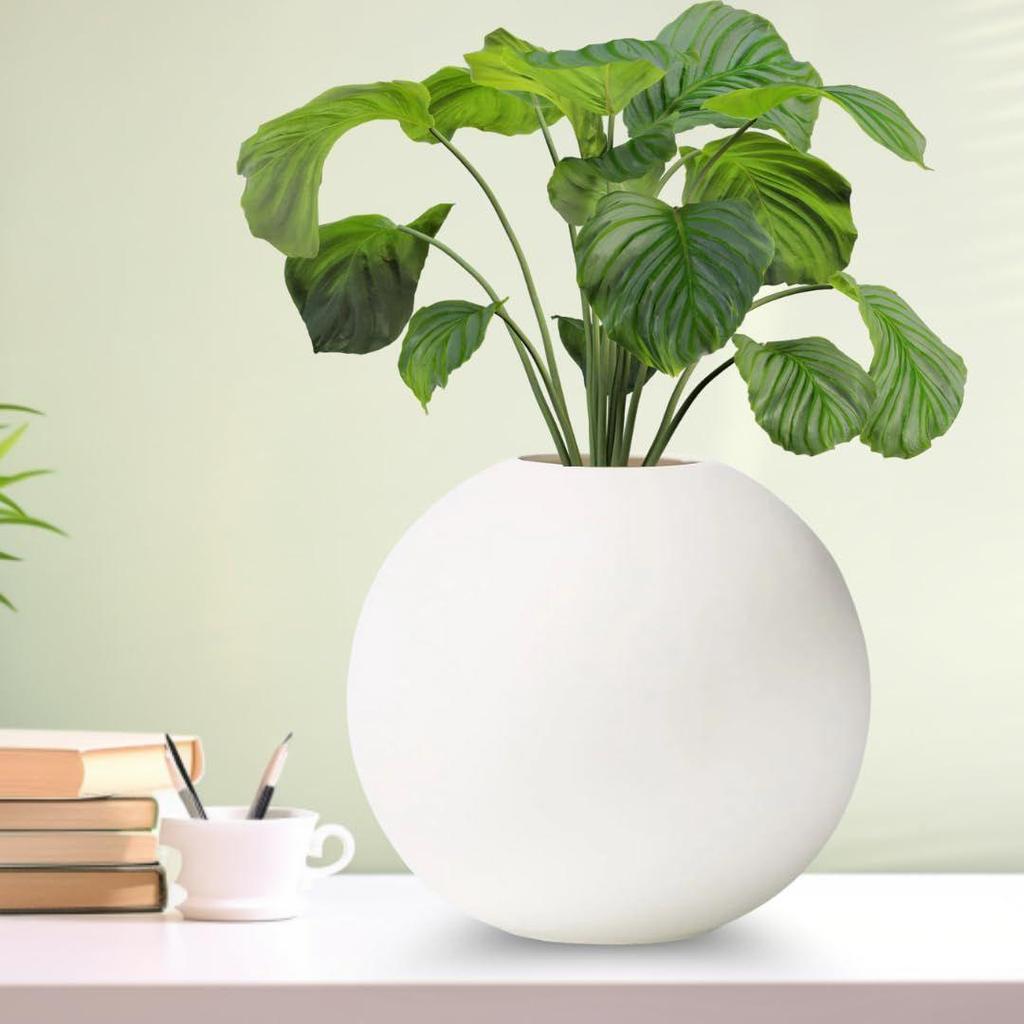 Neueste Keramik 'Weiße runde Vase' 4 Zoll - 1er-Set | Dekorative runde Vase für Trockenblumen und Pampasgras | Vasen für Heimdekoration,