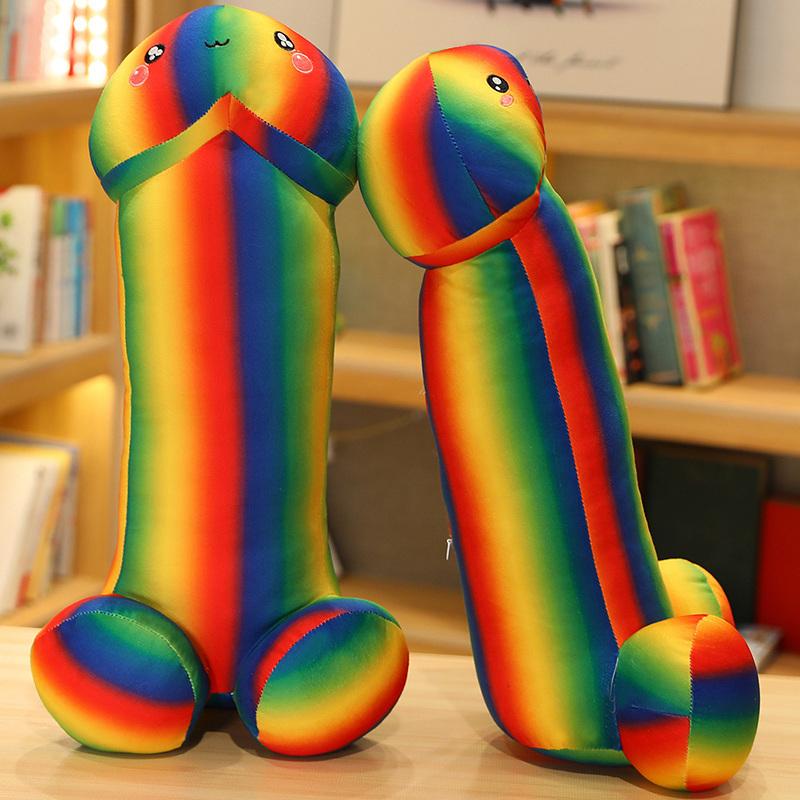 Großer Regenbogen-Trick-Penis-Plüsch, weiche Simulation, Jungen-Schwanz, Plüschtier, echtes Penis-Kissen, sexy Umarmungskissen, Geschenk für die Freundin