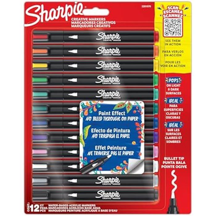 Marqueurs créatifs - sharpie - 12 feutres - pointe ogive - encre à base d'eau - couleurs assorties