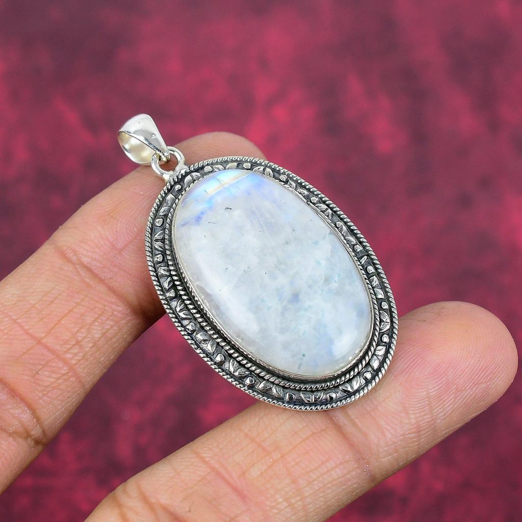 Regenbogen Mondstein Anhänger Edelstein Schmuck, 925 Sterling Silber Anhänger, handgemachter schöner Schmuck Anhänger
