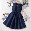 Kinderbekleidung Mädchen Sommerkleidung Französisch Retro Bedruckt Flatterärmel Mittlere Größe Kinder Tailliertes Plissee-Kleid