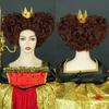 Royal Queen Perücke, dunkelrot, kurzes lockiges Haar, synthetische Herz-Cosplay-Perücken, Halloween-Kostüm-Party-Perücke